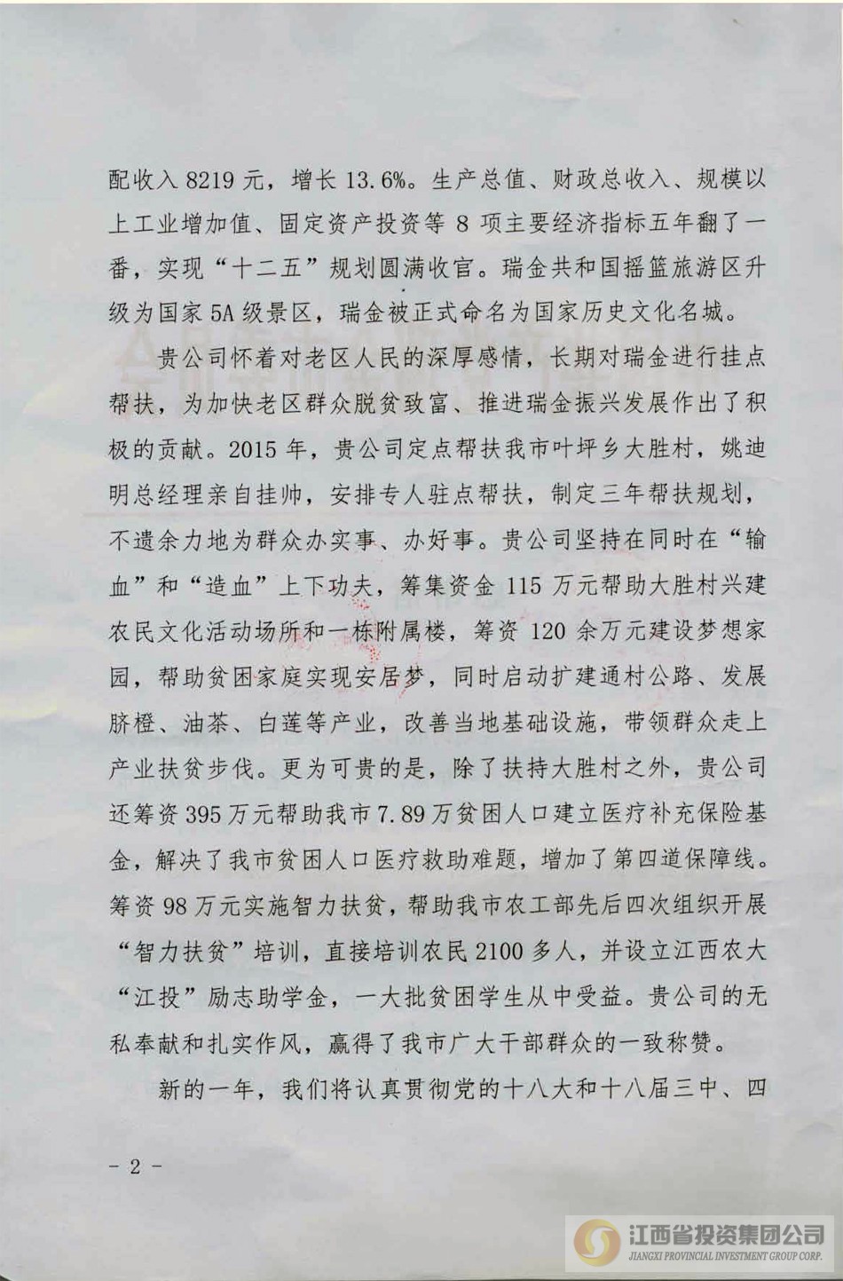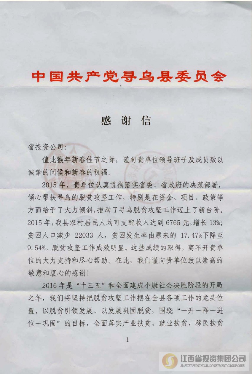 江西省投资集团:集团公司帮扶瑞金市、寻乌县2016年首期农民...